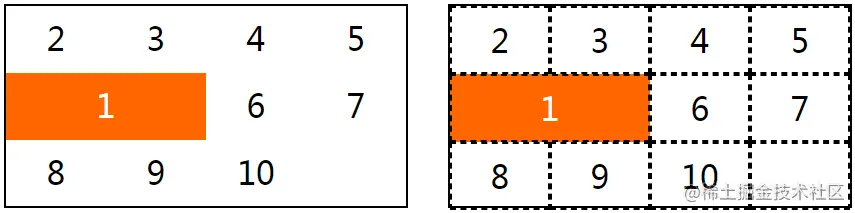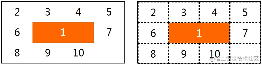 (5)网格区域(grid area)由一个或多个相邻的网格单元组成的矩形区域,最大的网格区域会包含所有的网格单元。