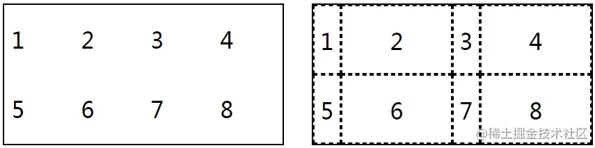 grid-auto-columns的用法与之类似,但修改的是超出边界的网格项的宽度。在下图中,左侧是默认超出时的宽度,即内容的宽度(width:auto);右侧是为容器添加下面样式后的宽度。
