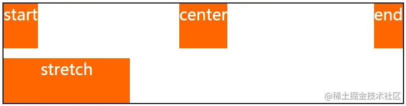 justify-items和align-items两个属性适用于网格容器,它们的默认值也是stretch,可选的关键字与之前的两个属性类似,下面的样式在为之前的div元素(网格容器)添加justify-items属性。
