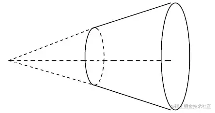 实际的渐变效果是连接两个圆周的锥体,其中开始圆之前的锥体部分显示偏移值为 0 的颜色,而结束圆之后的锥体部分则显示偏移值为 1 的颜色。理解这个概念有一些难度,所以我用一个图片来说明,希望你能够理解它的原理。