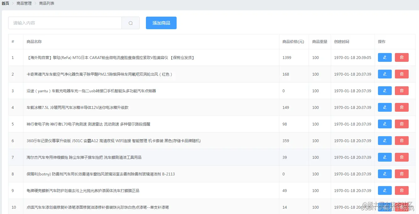 图3-4后台商品管理功能UI界面