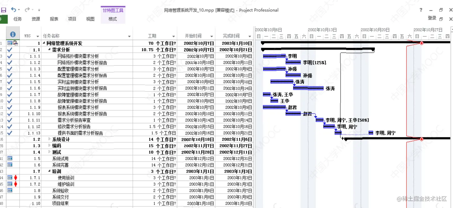 甘特图可以显示任务的基本信息,方便查看任务的工期,开始和结束时间以及资源的信息。