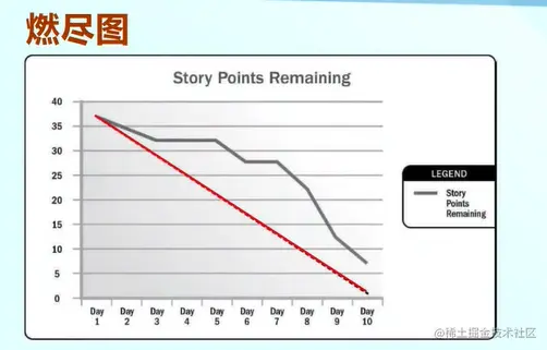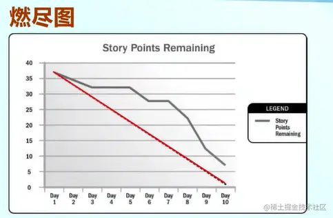 燃尽图表示还有多少任务没有完成,如图所示:
