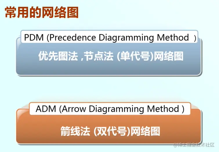网络图是活动排序的一个输出,可以展示项目中各个活动与活动之间的逻辑关系。常用的图有PDM网络图和ADM网络图。