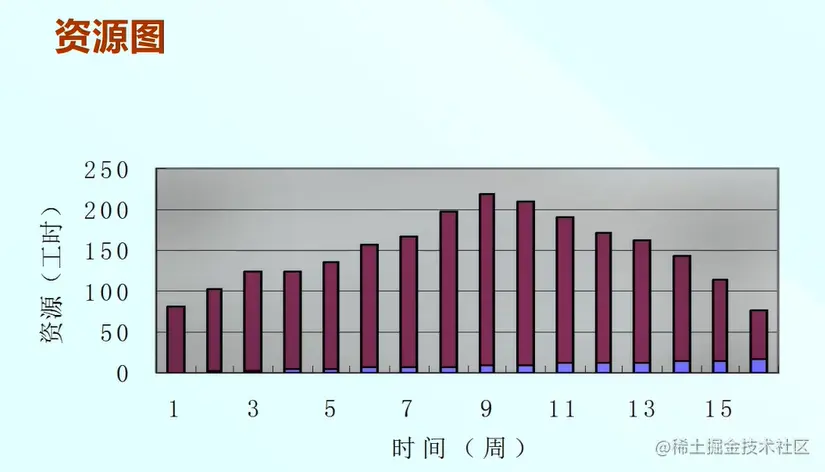 资源图用来表示项目进展中资源的分配情况。