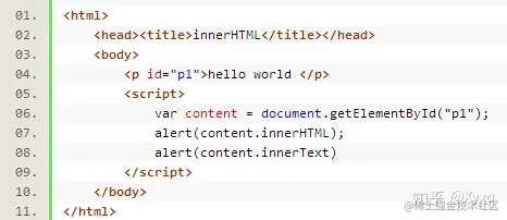 alert(content.outerHTML)则弹出:"<p id="p1">hello world</p>"\