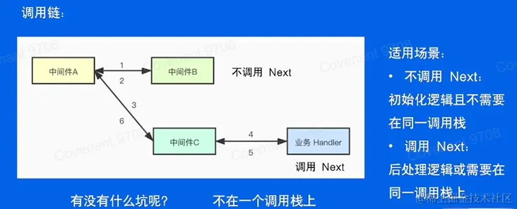 - 路由上可以注册多Middleware,同时也可以满足请求级别有效只需要将Middleware设计为和业务和handler相同即可。