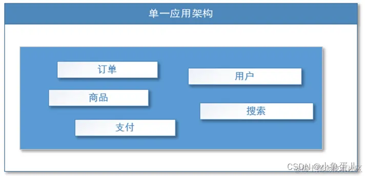 适用于小型网站,小型管理系统,将所有功能都部署到一个功能里,简单易用。