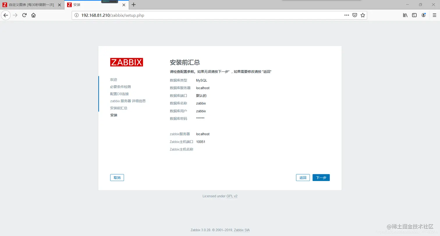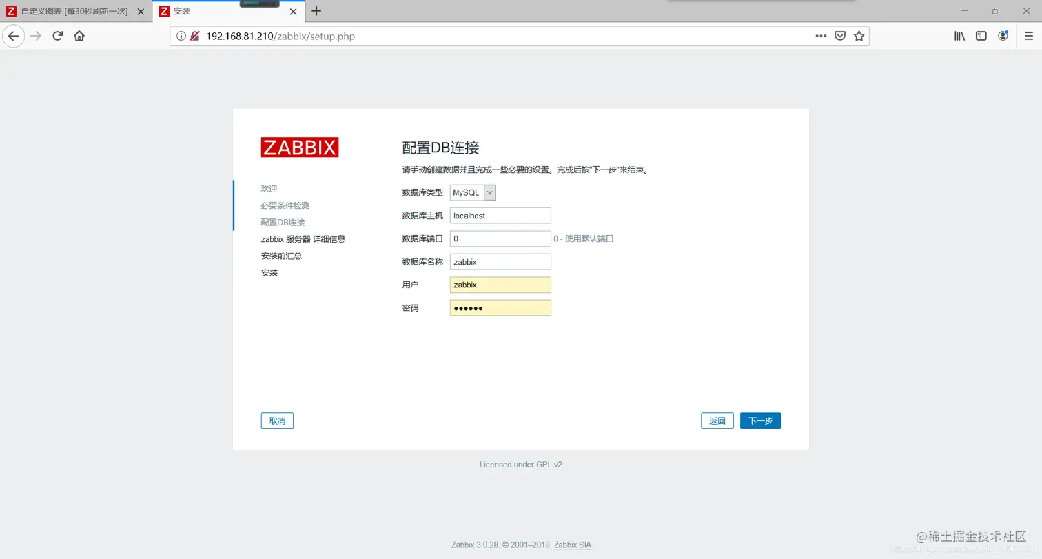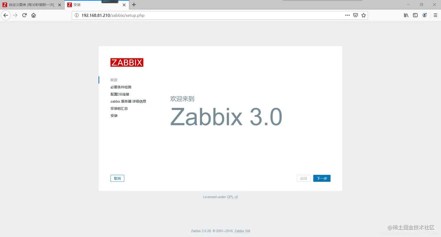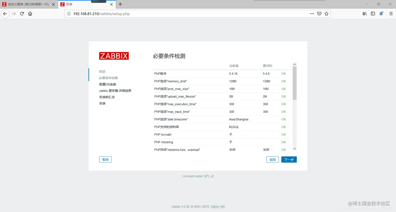 在浏览器输入ip地址/zabbix进入安装向导页面