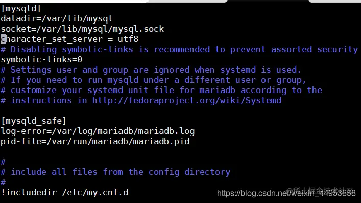 1.6.编辑MariaDB主配置文件,设置字符集编码为UTF-8