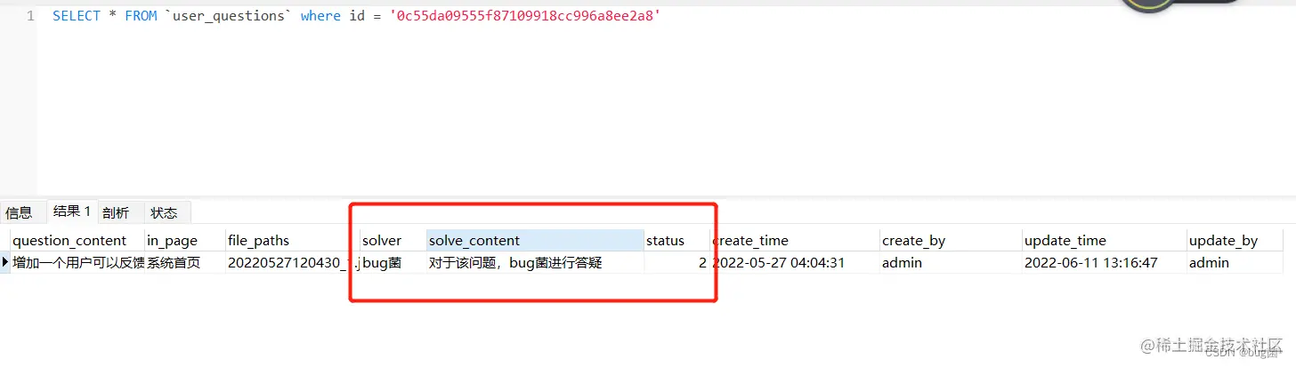 这里我就要来分析一波了,首先对于数据库有个字段,status,业务要求在页面展示时能展示问题是否解决,我这里是将该数据状态与业务状态共用同一个字段,那自然有固定status值。具体如下:status状态值(0:正常,1:删除;2:已解决;3:不予解决;4:解决中;5:问题关闭)。对于该些状态,有些虽然用不上,但是也要预先定义好,说不定后续需求又需要增加,也就直接赋值即可。