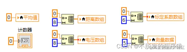 在“测距_测量"事件结构中,通过“测量子程序"读取Arduino Uno控制器返回的数据,并利用公式节点和5阶拟合系数计算得到所测量的距离,同时利用计数器将距离数据循环显示在测量数据中。“测距_测量"值改变事件程序框图(部分)如下图所示: