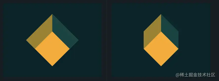 - 这一题我提供两种解题思路,其实小伙伴第一眼看到这个图案第一个想到的应该就是一个3D的立方体,但是我没记错的话CSSBattle这个网站的编译器是不支持3D效果的(小伙伴们也可以去试试),顺带一提,3D效果的实现只需要将容器的