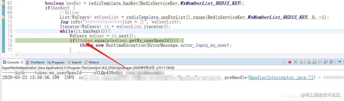System.out.println("-----Auth----token:" + Constants.USER_OPENID_KEY + "-----");