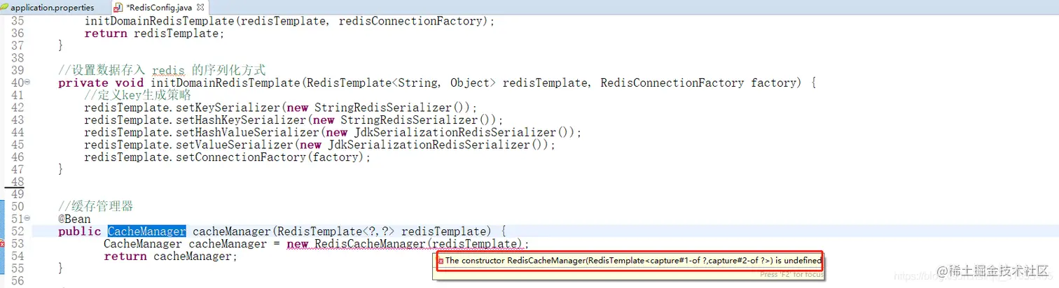 The constructor RedisCacheManager(RedisTemplate<capture#1-of ?,capture#2-of ?>) is undefined。