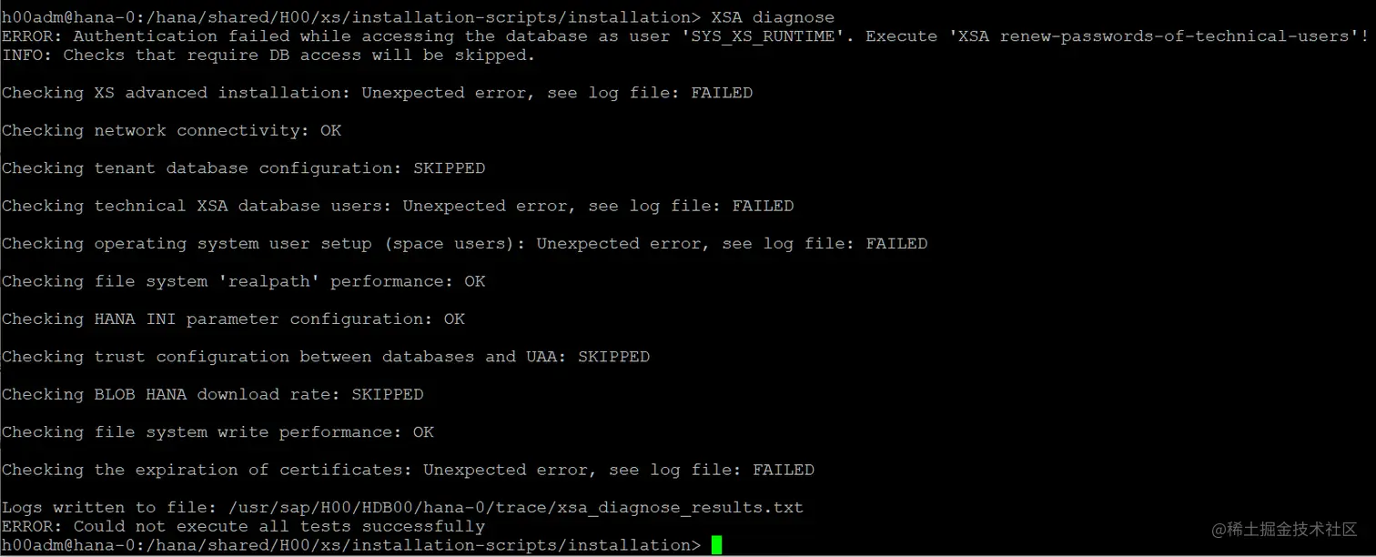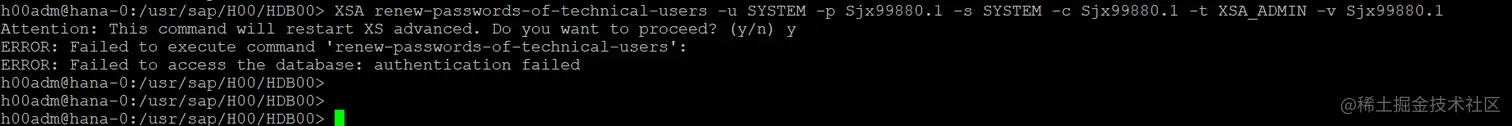 根据错误消息 SYS_XSA authentication failed SQLSTATE: 28000 在网络上搜索,找到了一篇帖子:Troubleshooting sap hana error: