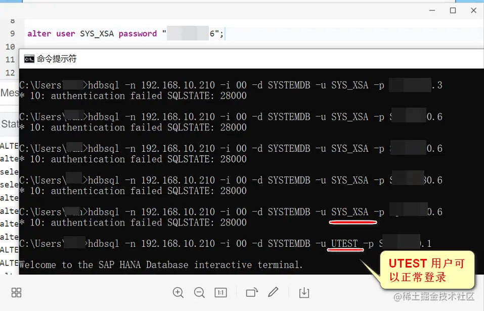 在 HANA 数据库里面有个用户 SYS_XSA, 连接时总报错 authentication failed, 但是密码是刚改过的,肯定是对的,还有什么原因会导致无法连接数据库呢?