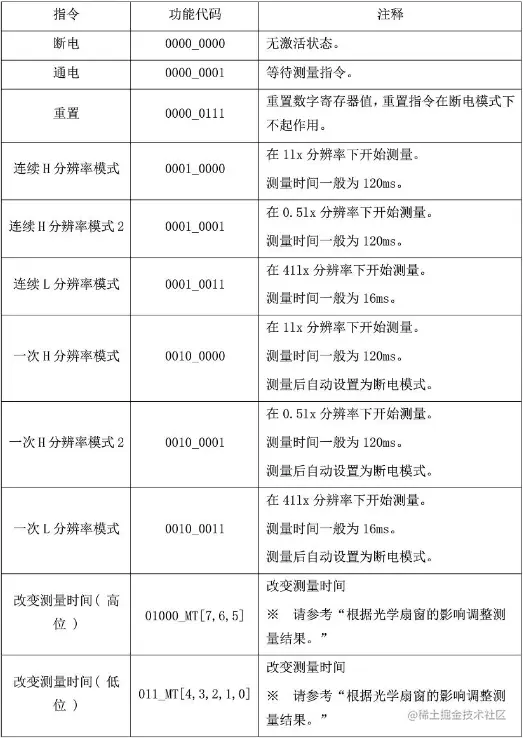 #define BH1750_ONE_L 0x23 // 一次低分辨率模式,4lx,16ms,测量后模块转到PowerDown模式