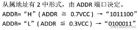 | ADDR | ADDR ≥ 0.7VCC 从机地址为”1011100“ ADDR ≤ 0.3VCC 从机地址为”0100011“ |