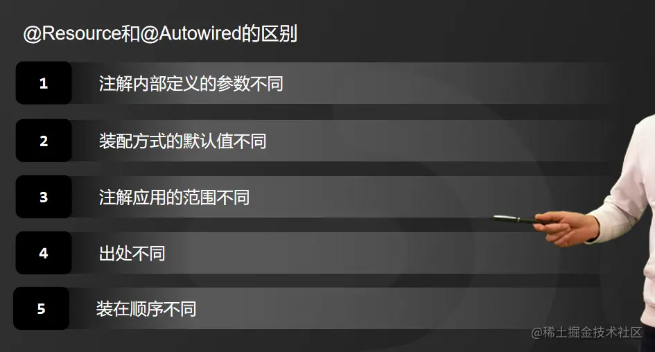那@Resource和@Autowired之间具体有哪些区别呢?我从以下五个方面来分析
