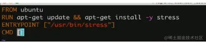 所以刚才的Dockerfile是可以的,因为后面的命令行参数:--vm 1 其实都是放到CMD来接受了,所以这种CMD + ENTRYPOINT结合方式是特别适用于这类型的image的,当然CMD还可以放一个默认参数。