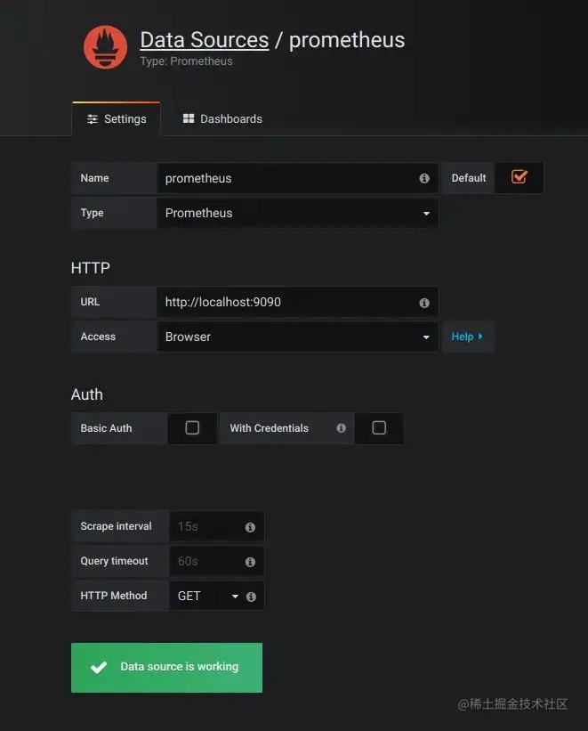 scrape_config 块:这里定义了 Prometheus 要抓取的目标,我们可以看到默认已经配置了一个名称为 prometheus 的 job,这是因为 Prometheus 在启动的时候也会通过 HTTP 接口暴露自身的指标数据,这就相当于 Prometheus 自己监控自己,虽然这在真正使用 Prometheus 时没啥用处,但是我们可以通过这个例子来学习如何使用 Prometheus;可以访问 http://localhost:9090/metrics 查看 Prometheus 暴露了哪些指标;