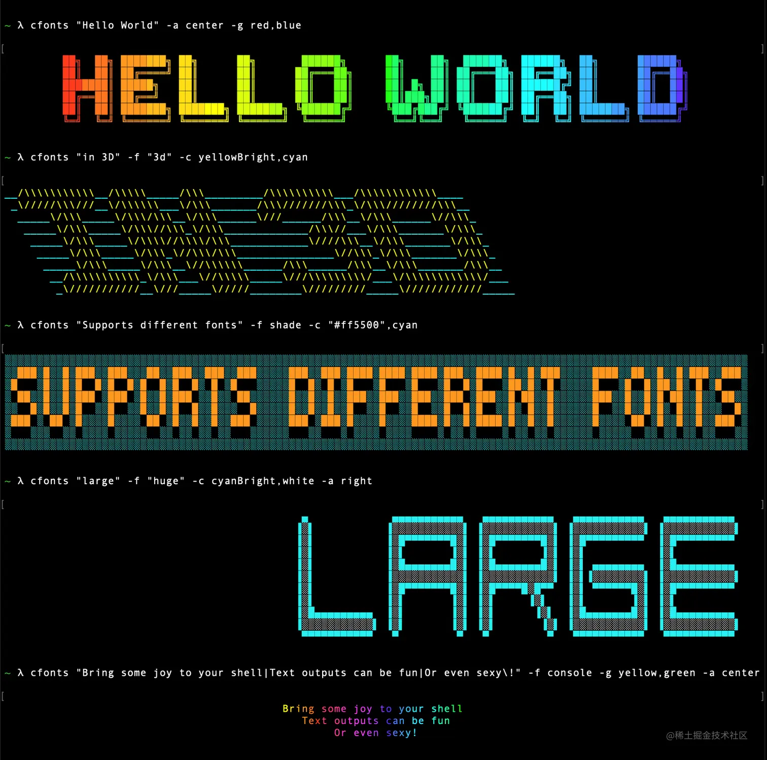 'cfonts - Sexy fonts for the console' by Dominik Wilkowski