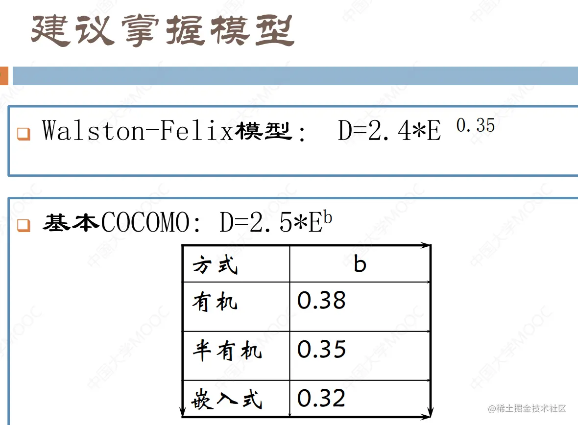 D是以月为单位的进度,E是以人月为单位的工作量,a是2-4之间的系数,b是1/3左右的系数。