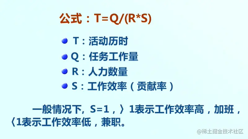 其中T:活动历时,Q:任务工作量,R:人力数量,S:工作效率(贡献率)。