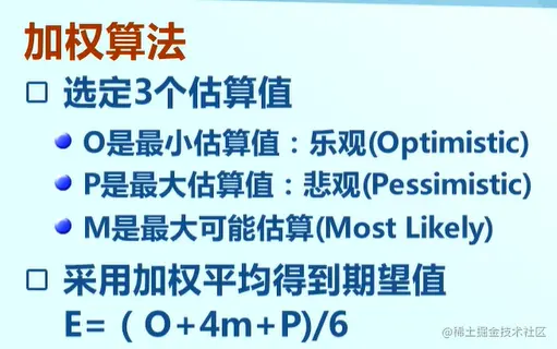 采用加权平均得到期望值E=(O+4M+P)/6