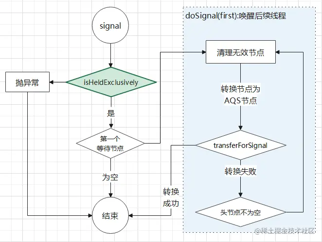ConditionObject-->>Sync: transferForSignal转换等待队列头节点至AQS队尾