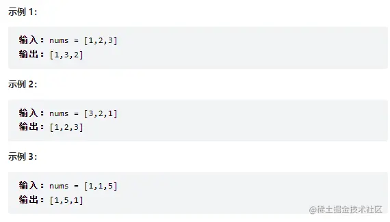 例如,arr = [1,2,3] 的下一个排列是 [1,3,2] 。