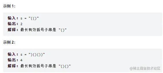 给你一个只包含 '(' 和 ')' 的字符串,找出最长有效(格式正确且连续)括号子串的长度。