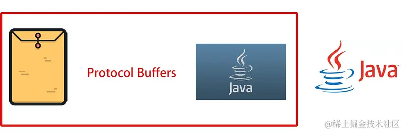 如果编程语言换成了 Java ,使用者可使用相同的 .proto 文件,利用 Protocol Buffers 工具生成 Java 代码,此代码可被 Java 进行解析。\