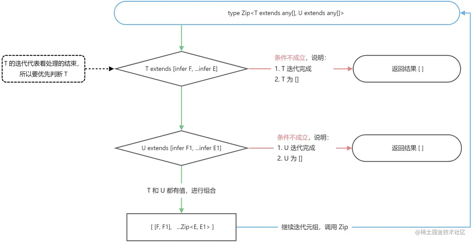 type Zip<A extends any[], B extends any[], L extends any[] = []> = L['length'] extends A['length'] | B['length']