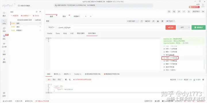 首先我们登录之后会获取一个token,但是token这个值每次登录之后在请求都会改变,这就是一个参数变量.怎么调用这个变量那,apipost用一个预执行脚本和后执行脚本.