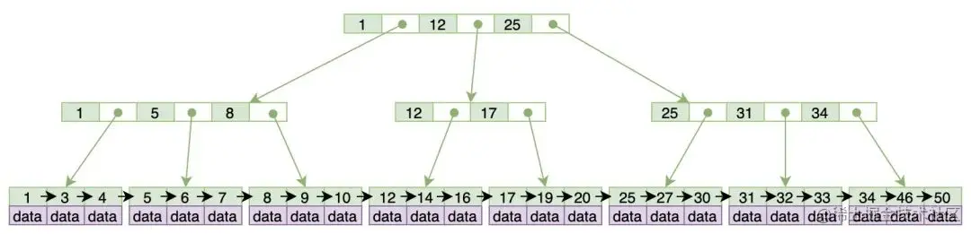 B树中各节点之间没有指针相邻,因此B树不适合做一些数据遍历操作。但是B+树的叶子节点上有指针进行相连,在做数据遍历的时候,只需要遍历叶子节点即可,这个特性使得B+树非常适合关系型数据库。包括一些offset、limit等操作,也更适合B+树。