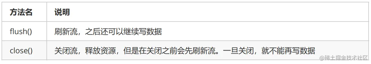 - 释放资源(关闭此文件输出流并释放与此流相关联的任何系统资源)