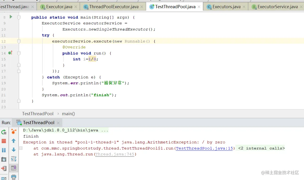 - submit方法:有返回值,用Future封装,执行的方法异常了可以在主线程里catch到。