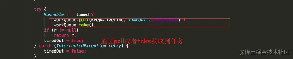 1. 线程正常执行完任务,并且已经等到超过keepAliveTime时间,大于核心线程数,那么会返回null,结束外层的runWorker中的while循环