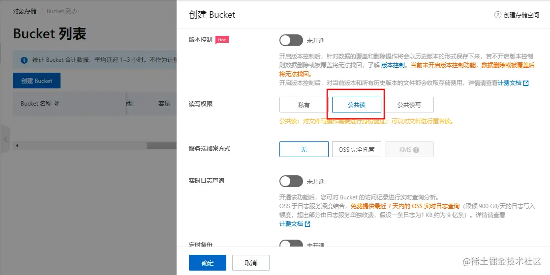 填写Bucket名称和Endpoint的地址,配置PicGo需要用到,读写权限为公共读。