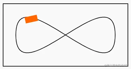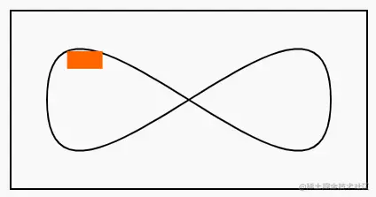 <animateMotion>元素可让图形沿着任意路径运动,无论是直线还是曲线,都能实现。在下面的示例中,橙色矩形会沿着S型曲线来回运动,如图33所示。