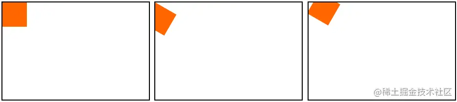 对于transform属性的动画,得用<animateTransform>元素完成。下面的示例演示了旋转矩形(如图32所示),其中type属性用于指定变形的动作,可选的值有translate、scale、rotate、skewX和skewY。