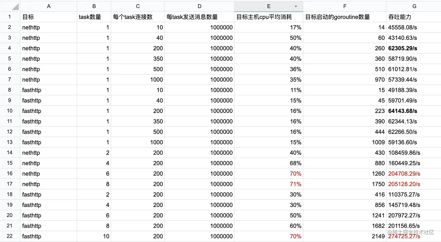 受特定场景、测试工具及脚本精确性以及压力测试环境的影响,上面的测试结果有一定局限,但却真实反映了被测目标的性能趋势。我们看到在给予同样压力的情况下,fasthttp并没有10倍于net http的性能,甚至在这样一个特定的场景下,两倍于net/http的性能都没有达到:我们看到在目标主机cpu资源消耗接近70%的几个用例中,fasthttp的性能仅比net/http高出30%~70%左右。