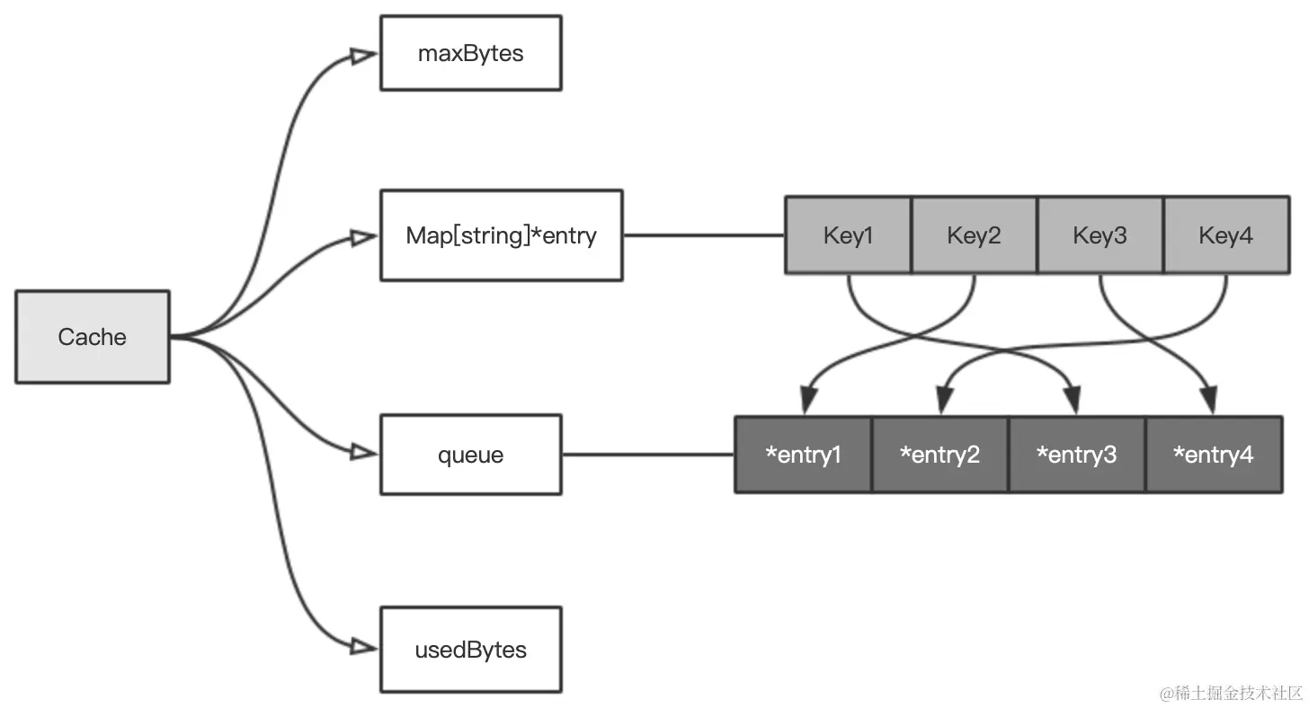 entry指针切片; - entry 和 FIFO 中的区别是多了两个字段:weight 和 index;