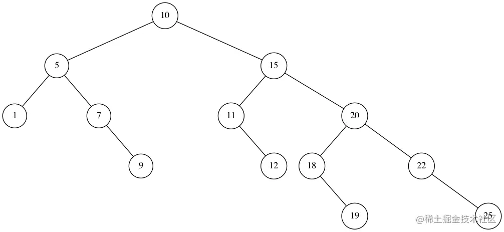 前两种情况比较容易理解,这里重点解释下第三种情况。比如我们要删除下面这棵树的结点15,那怎样才能让这棵树尽量维持原貌?马上想到,对一棵二叉查找树进行中序遍历即可得到一个递增序列。那用跟结点15大小关系最接近的结点来代替它的位置不就可以了吗!