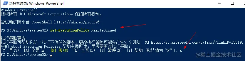 输入set-ExecutionPolicy RemoteSigned,然后按A回车即可,编辑****