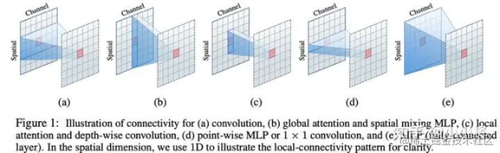 Sparse connectivity:每个token的输出只依赖于其所在local window上tokens,而且各个channel之间是无联系的;(这里忽略了attention中query,key和valude的linear projections,那么attention就其实可以看成在计算好的权重下对tokens的特征进行加权求和,而且是channel-wise的);