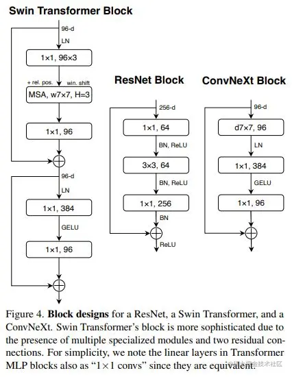 ConvNeXt 从原始的 ResNet 出发,逐步加入swin transform 的 trick,来改进模型。论文中适用 ResNet模型:ResNet50和ResNet200。其中ResNet50和Swin-T有类似的FLOPs(4G vs 4.5G),而ResNet200和Swin-B有类似的FLOPs(15G)。
