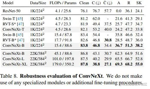 Robustness Evaluation , ConVNeXt 也优于 swin-Transform